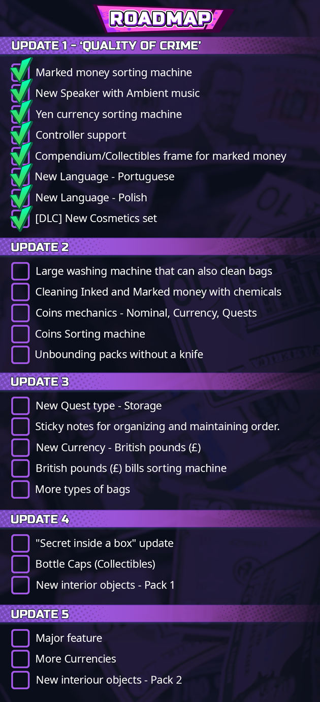 Use washing machines, dryers, counting machines, and other tools to clean dirty cash. After cleaning, don’t forget to count it and send it to your handlers! Maybe not all of it; the money pile doesn’t grow by itself! Progress through the jobs to upgrade your gear and unlock new ways to handle the money!
