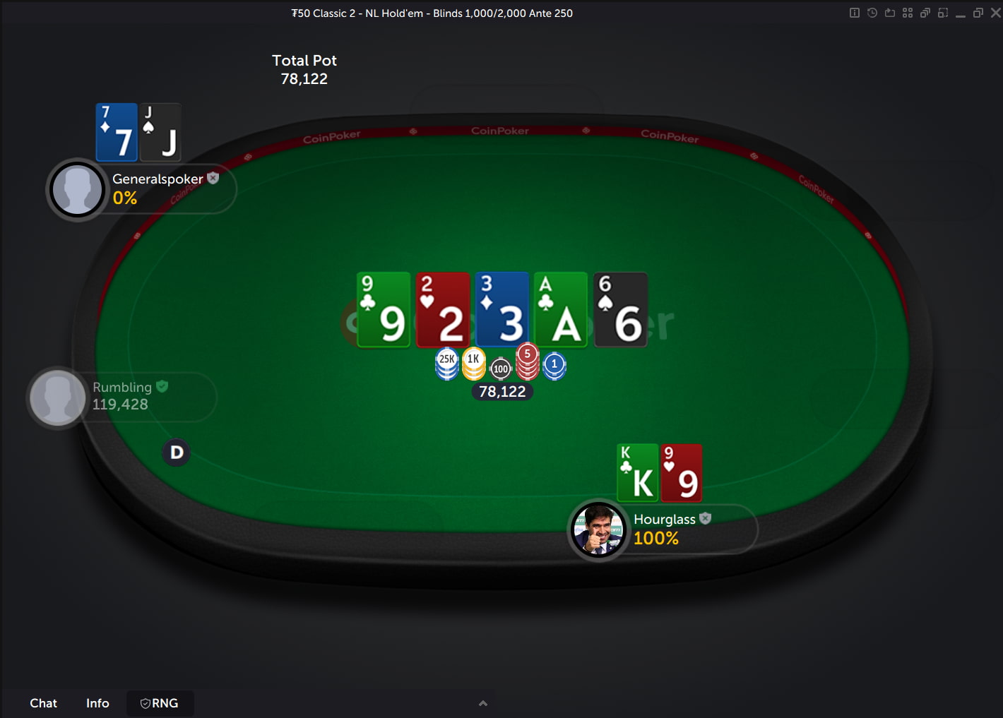 Major poker sites retain control of their RNGs, but our decentralized model puts ‘shuffling’ back in your hands. It’s fully transparent and CoinPoker players contribute to the order of the cards. Our Hand Hindsight feature allows you to view undealt community cards and the ordered deck, confirming everything was dealt fairly.
